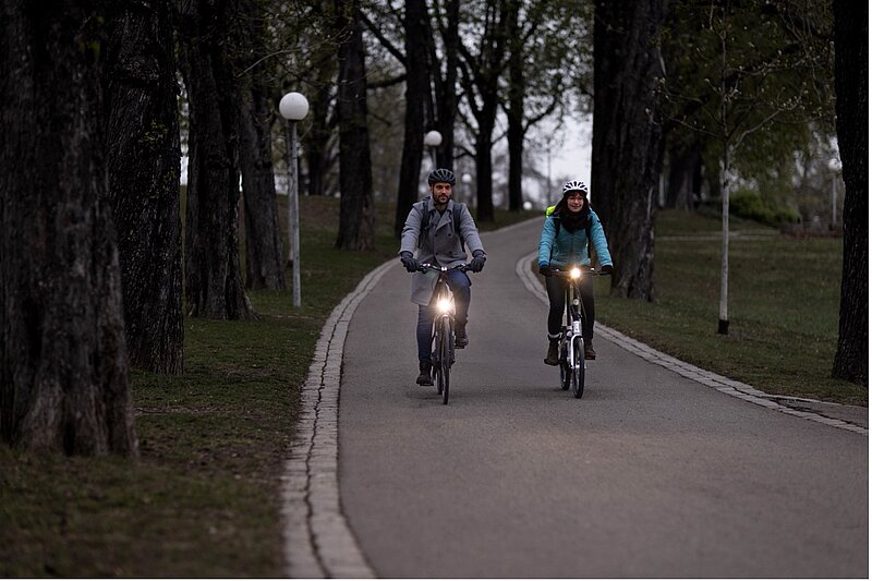 Die Fahrradbeleuchtung muss nicht mehr zwingend von einem Dynamo betrieben werden. Auch batterie- oder akkubetriebene Scheinwerfer und Rückleuchten sind zugelassen. Wichtig ist, dass diese bei schwierigen Sichtverhältnissen immer mitgeführt und genutzt werden, um jederzeit sicher unterwegs zu sein. Die vorgeschriebenen Reflektoren müssen hingegen dauerhaft am Fahrrad installiert sein.